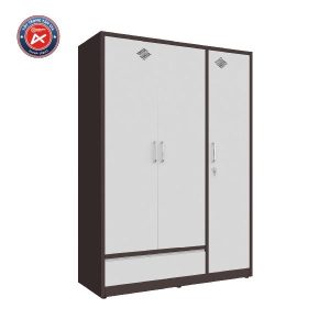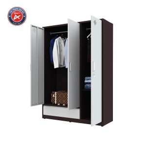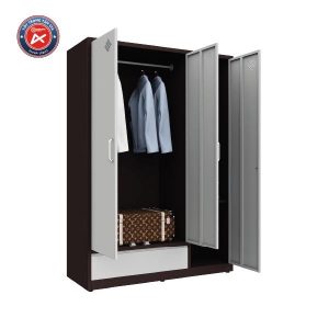Tủ sắt gia đình 3 cánh, 2 khoang riêng biệt. Khoang lớn có xà treo đồ, phía dưới là ngăn kéo ray trượt. Khoang nhỏ cánh dài, gồm 1 xà treo và 2 đợt di động dễ dàng điều chỉnh kích thước chiều cao ngăn để đồ phù hợp với nhu cầu sử dụng. Kích thước: W1350 x D500 x H1830 mm.